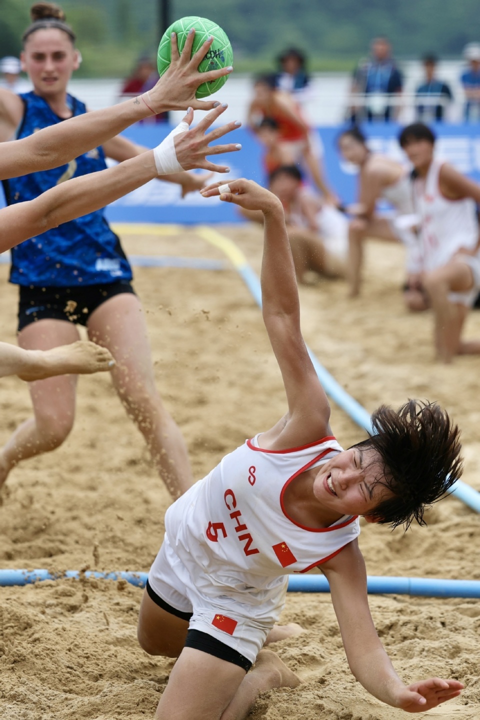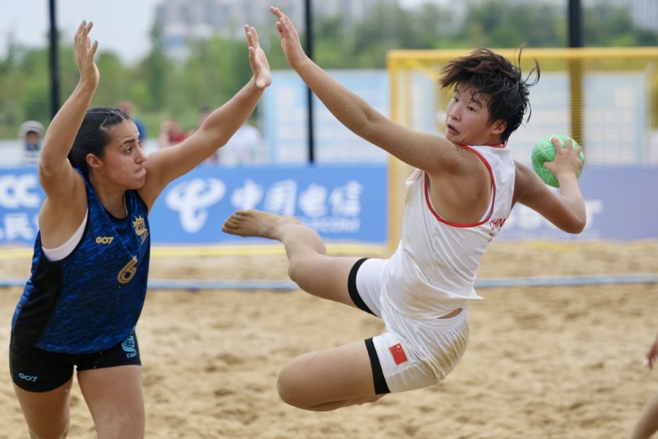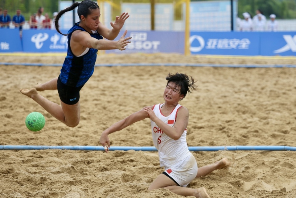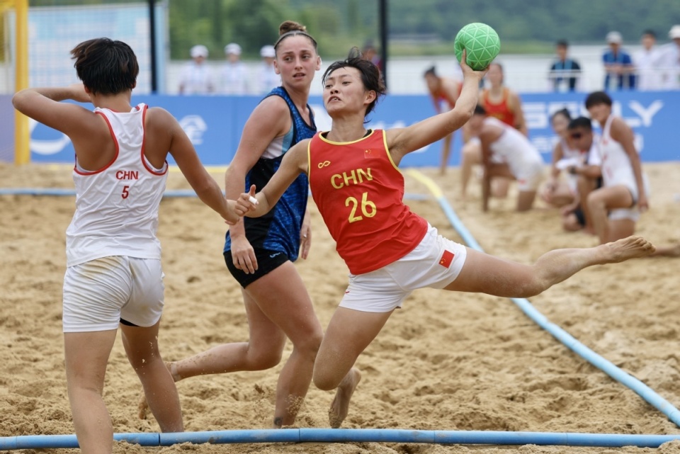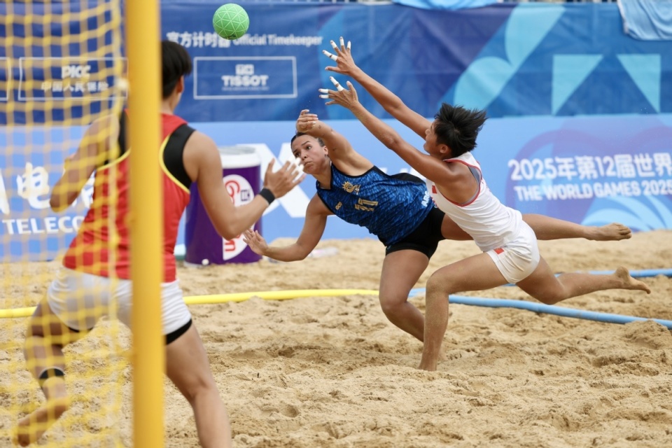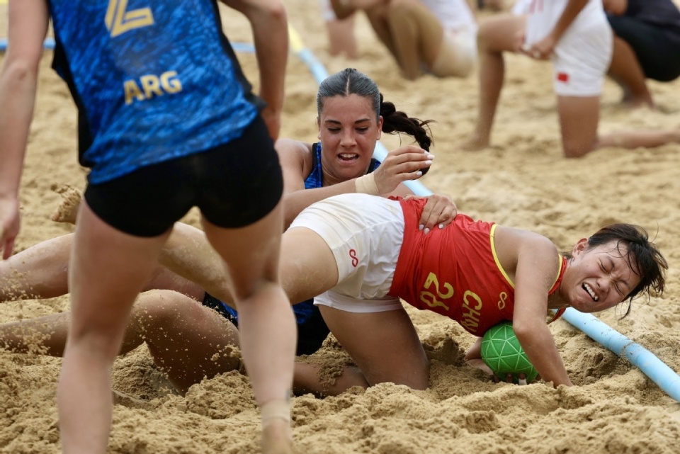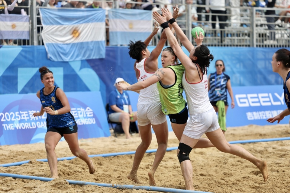中国日报成都8月10日电(记者 魏晓昊)2025年8月9日,成都世运会女子沙滩手球预赛在兴隆湖沙滩赛场举行,中国队0-2不敌阿根廷队。